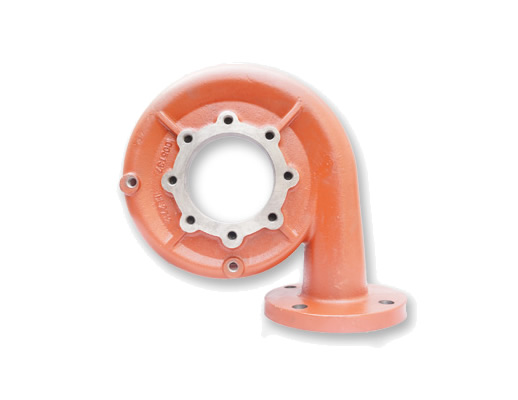 ? 直角泵殼體 / 蝸輪殼:樹脂砂整體鑄造,流道模板 CNC 精修,減少渦流損失;壓力試驗 1.5×PN,30 min 無滲漏。
